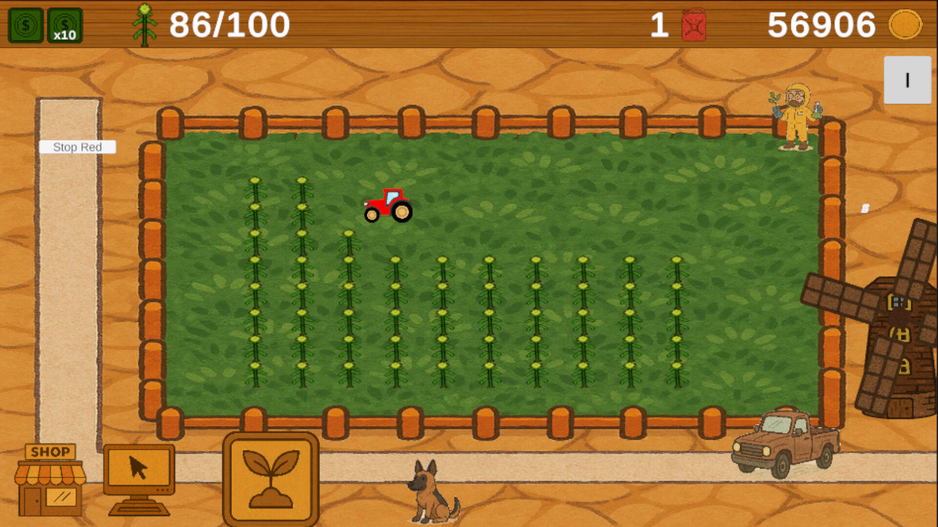 Your farm evolves before your eyes: machines take over, tractors harvest for you, and your stats skyrocket. Each upgrade makes your farm more profitable, faster, and more efficient. Meanwhile, Grandpa George — your lazy, retired grandpa who never misses a chance for a sarcastic comment — follows you with grumpy but oddly endearing advice.