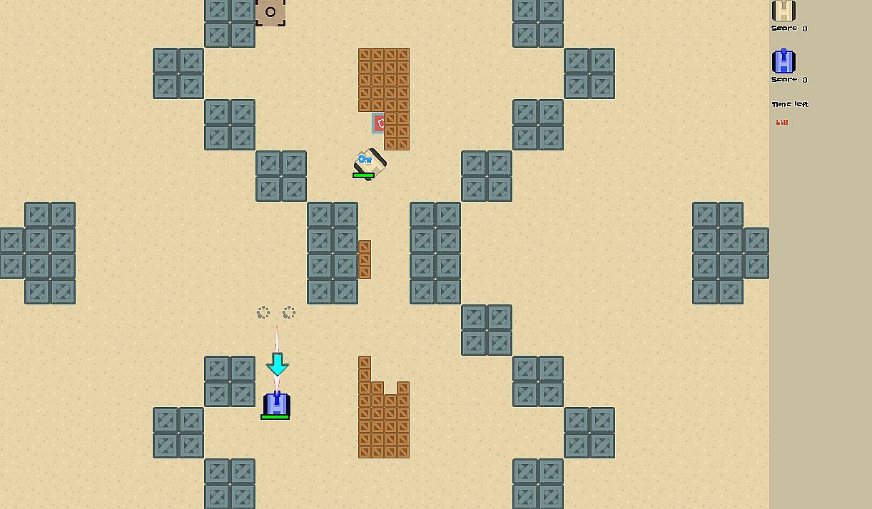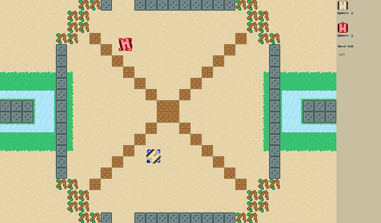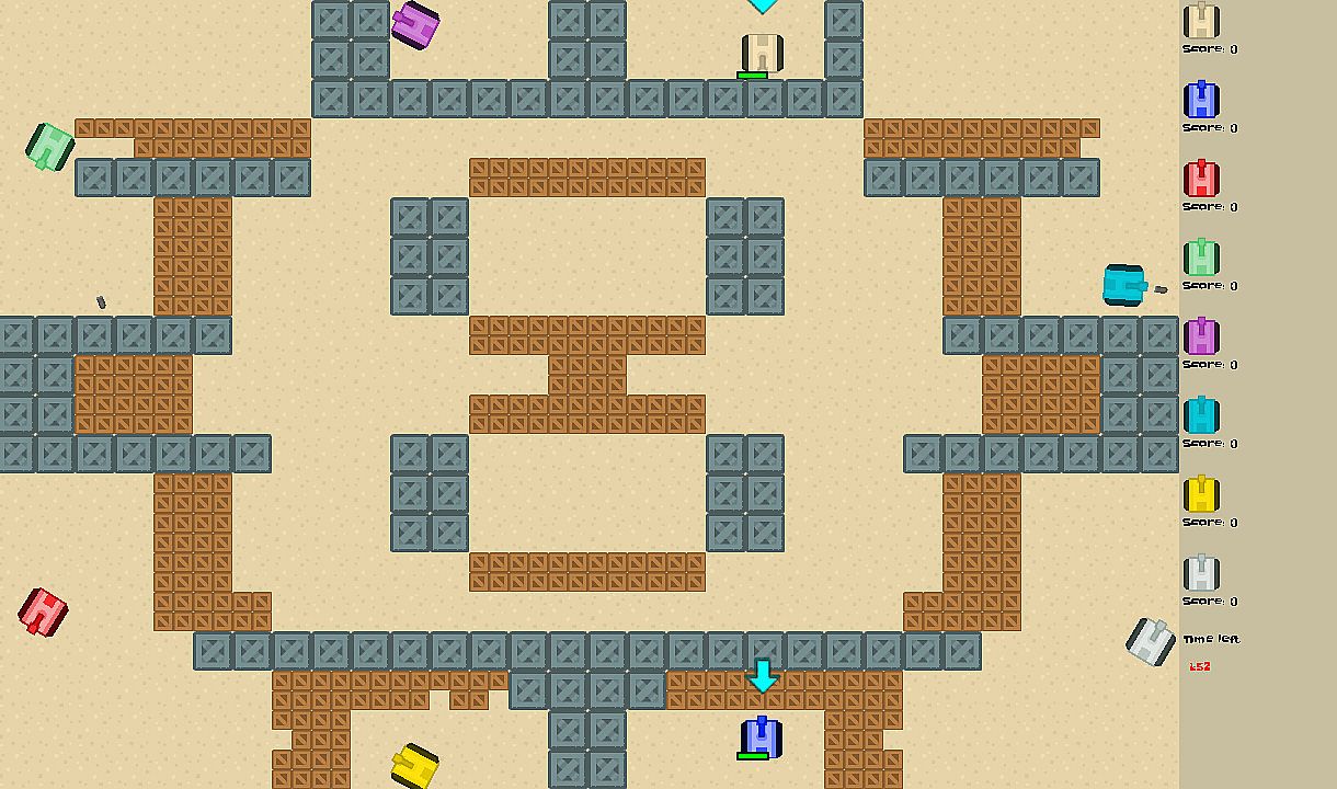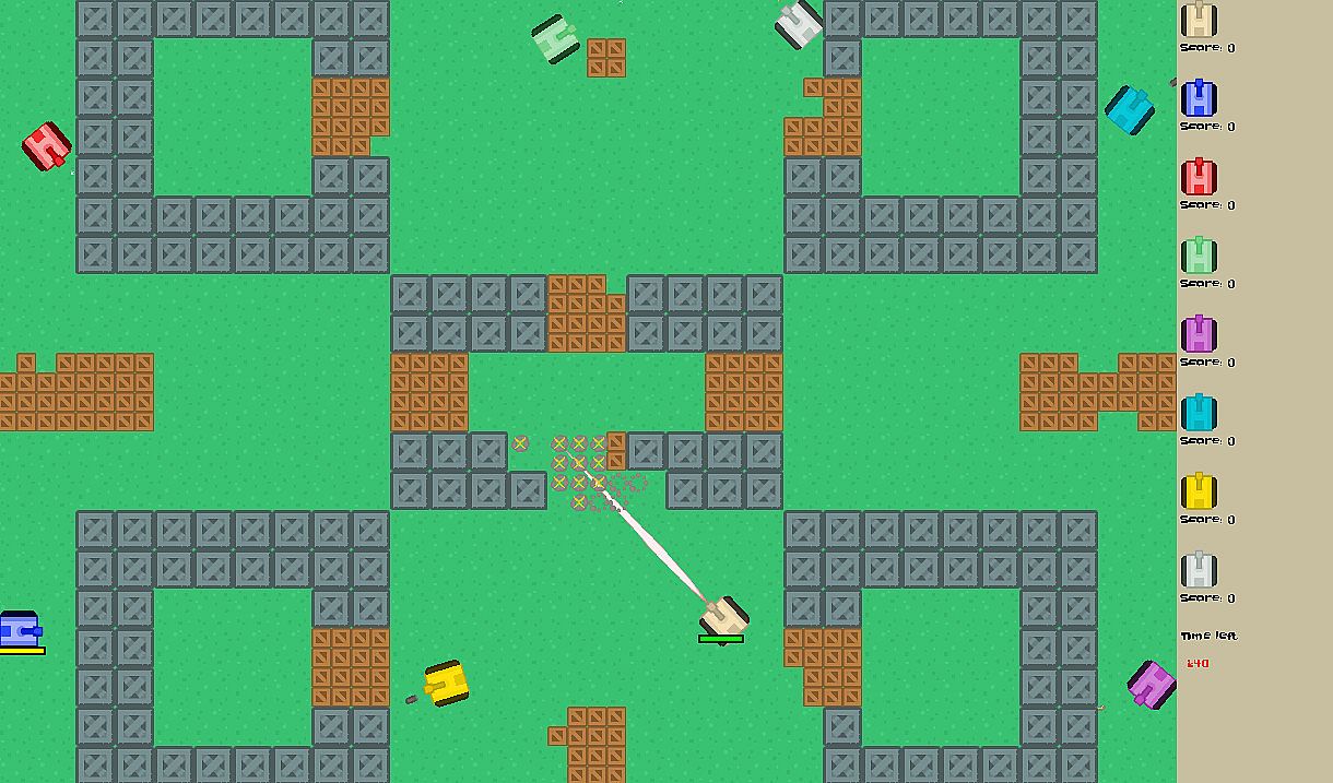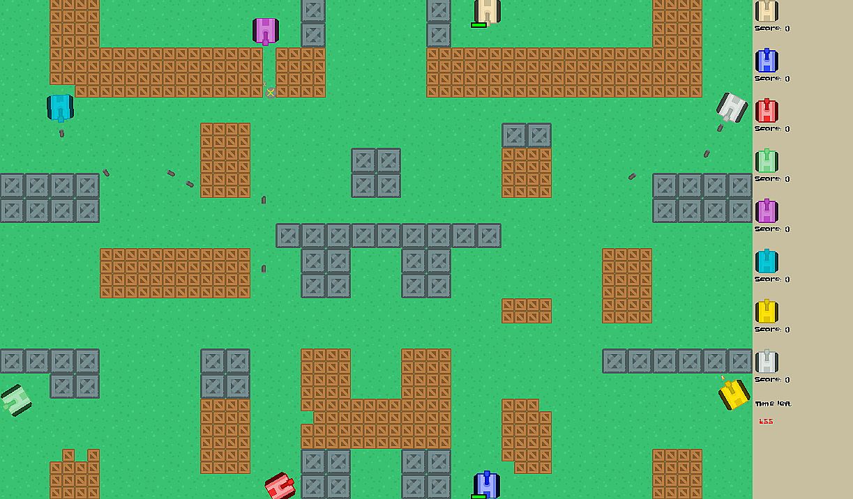 Party game for 8 players. Game is about fighting against opponents with tanks using various weapons.