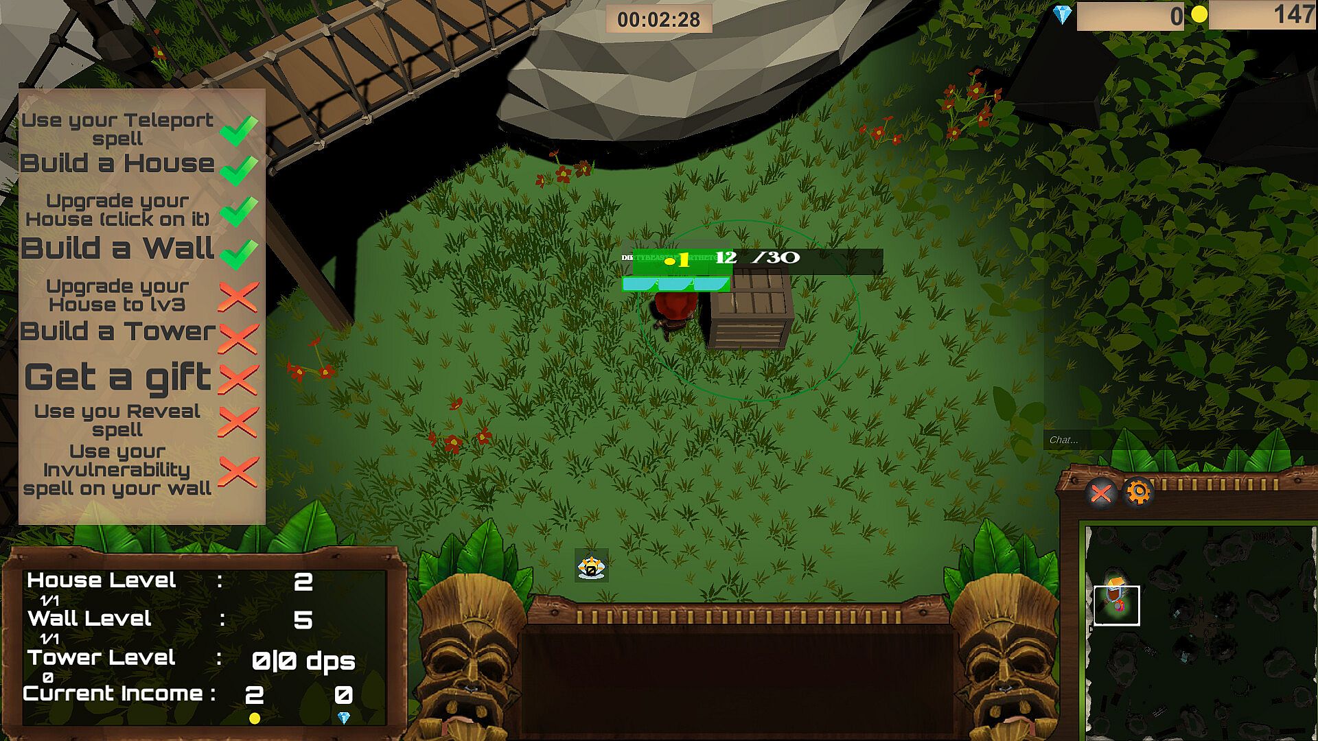 • The Elf is playing with a bunch of other Elves, up to a maximum of 9. In order to survive the Troll, they will have to build a base with a House, a Wall and a Tower, which attacks the Troll when it's close. Yet their goal is not to stay in their base forever, in order to continue expanding their income, they will have to cooperate in order to get gifts that contain essential resources, or troll wards! In the end, they may even take down the Troll ... ]