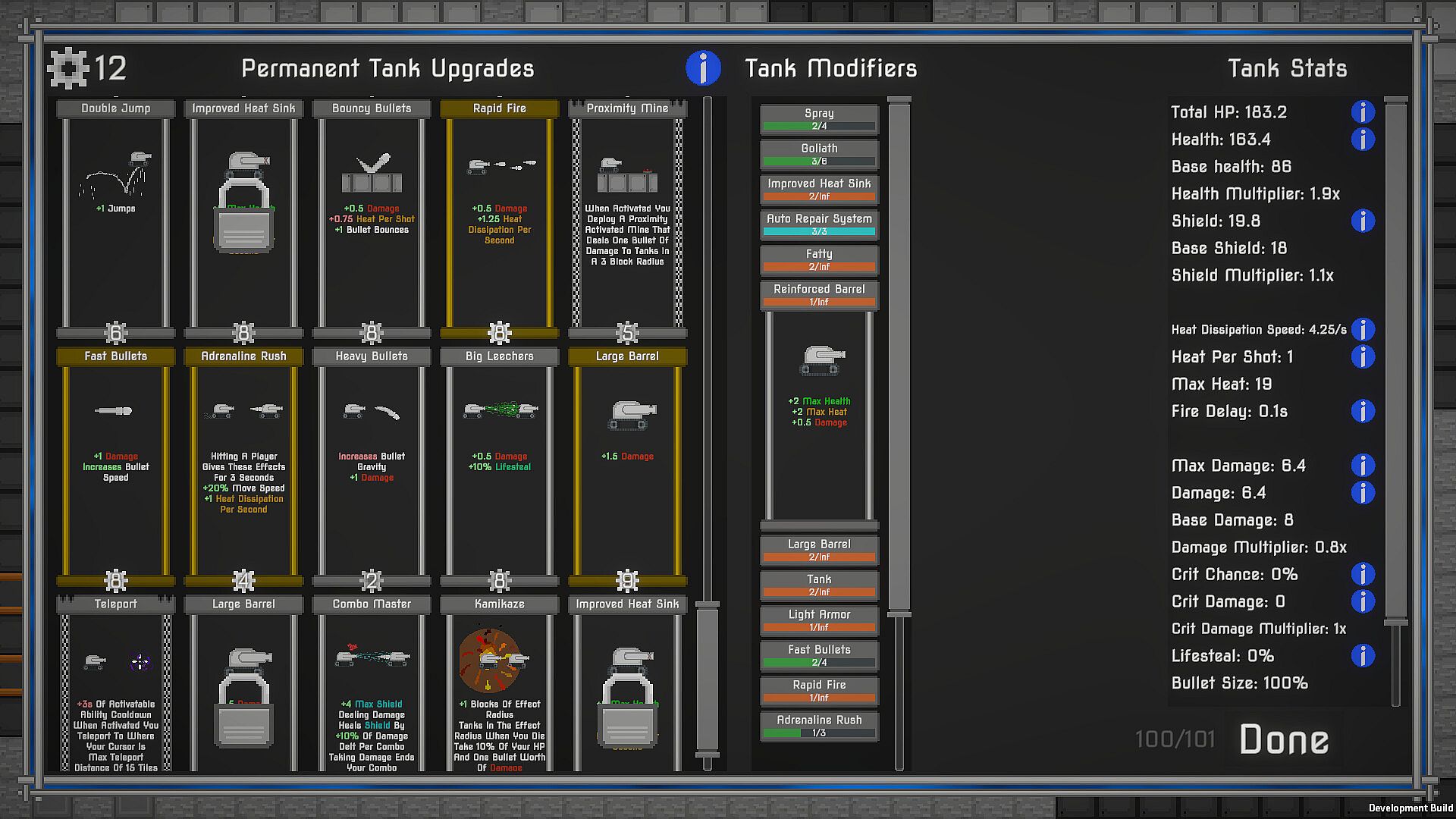A majority of the gamemodes have a modifier shop where you can buy tank modifications to make your tank into a personalized killing machine. Some gamemodes have pre-made classes to keep the gamemodes fast-paced. Most of the modifiers act passively but some of them can be activated for special effects!