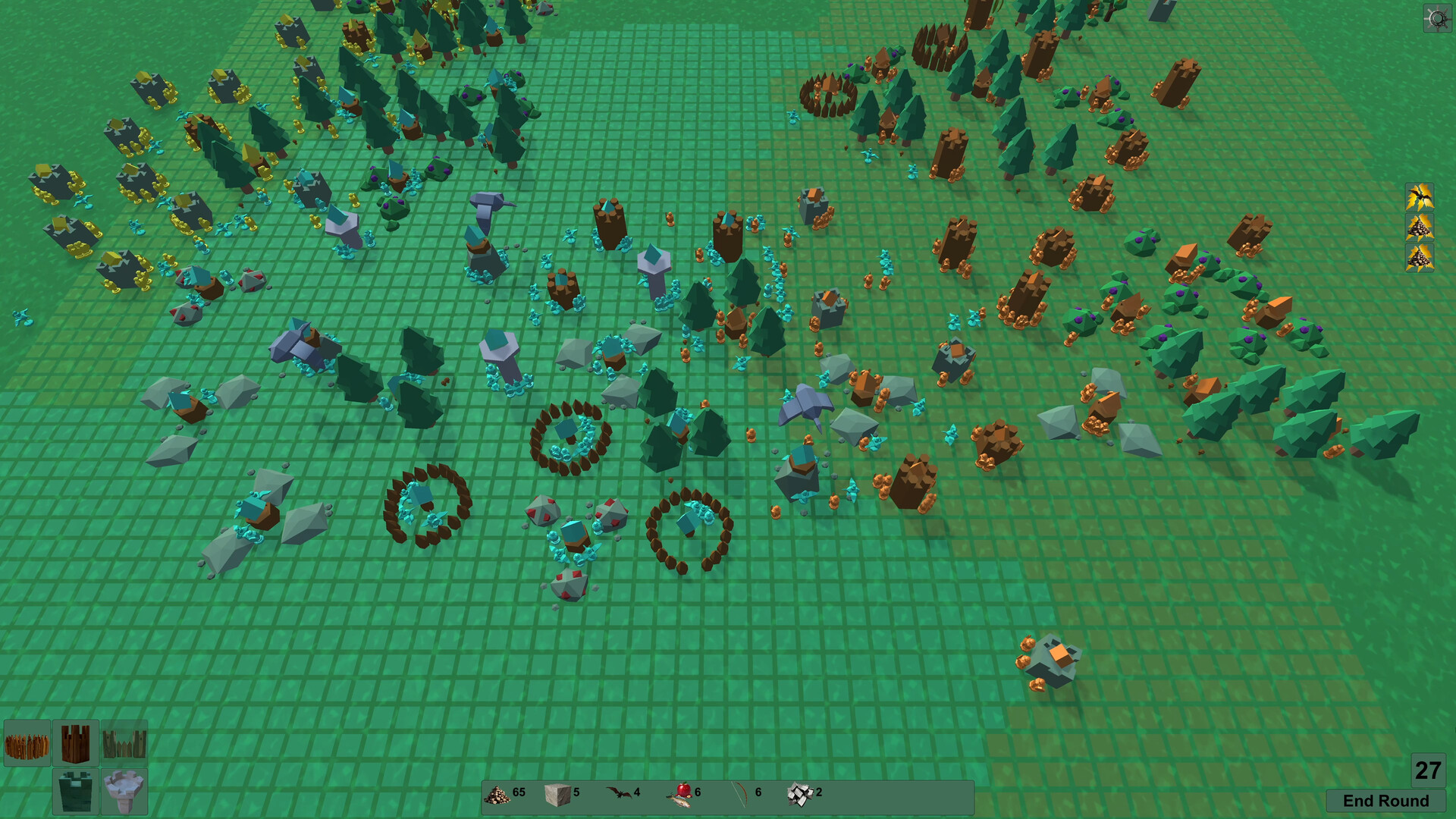 The empire that controls a resource receives a yield at the end of each round. These resources can be used to build and upgrade towers.