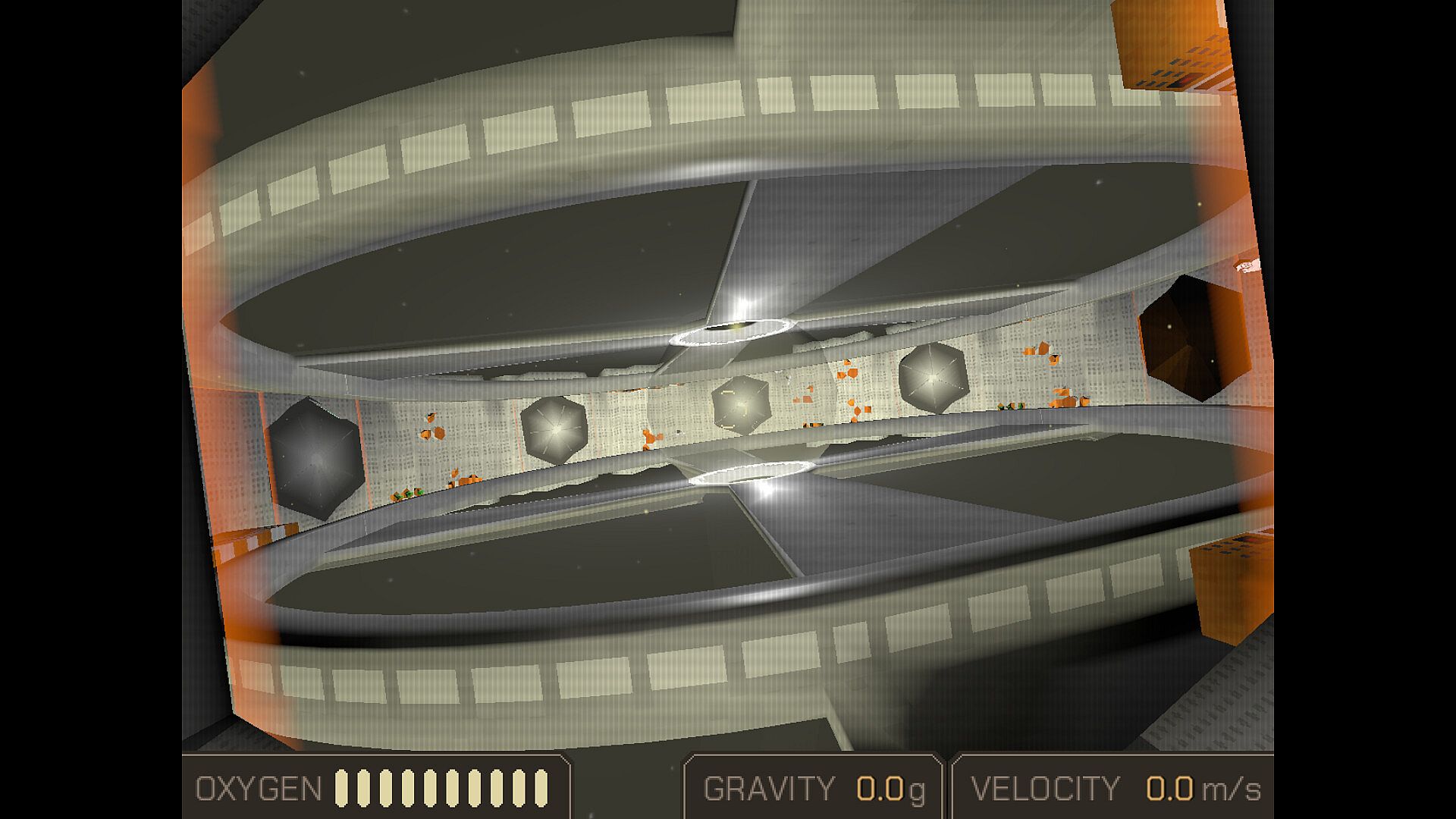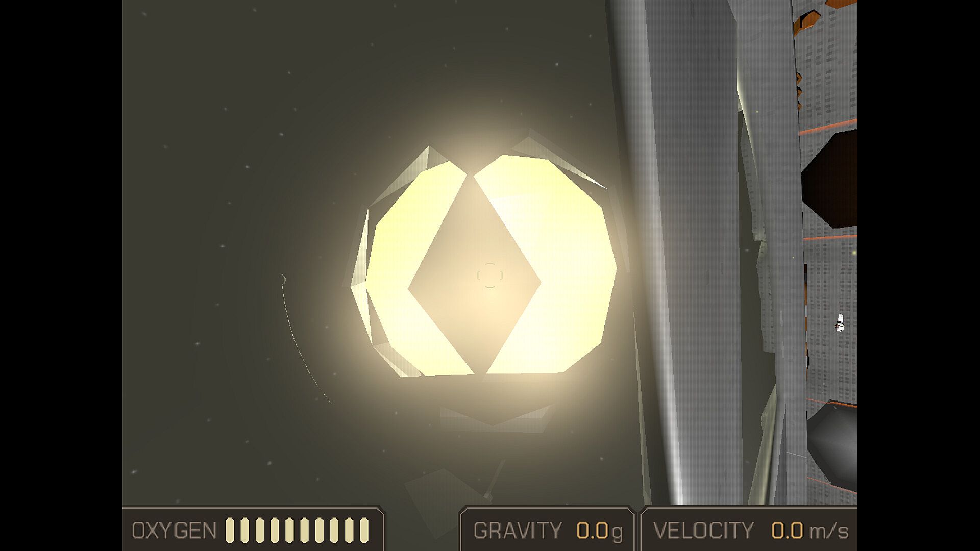 Navigate through pitch black environements using only your flashlight to see and Integrated Propulsion Unit to maneuver in zero gravity.