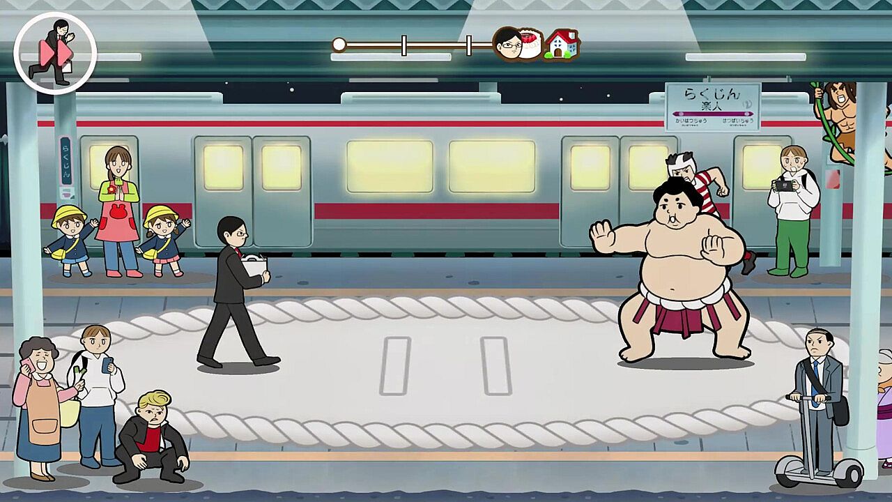 Dad races home with his daughter's birthday cake, dodging crowds of pesky passersby who block the way. One wrong bump ruins the cake, so players weave through the chaos and dash to the goal. This casual action game on PC demands sharp moves and quick emergency evasions to stay on track. A boss waits at the stage's end, ramping up the challenge in this highly difficult title. Game overs hit fast, but players retry relentlessly to master the path. It hooks fans of tough, repeat-play action games that test reflexes and persistence.