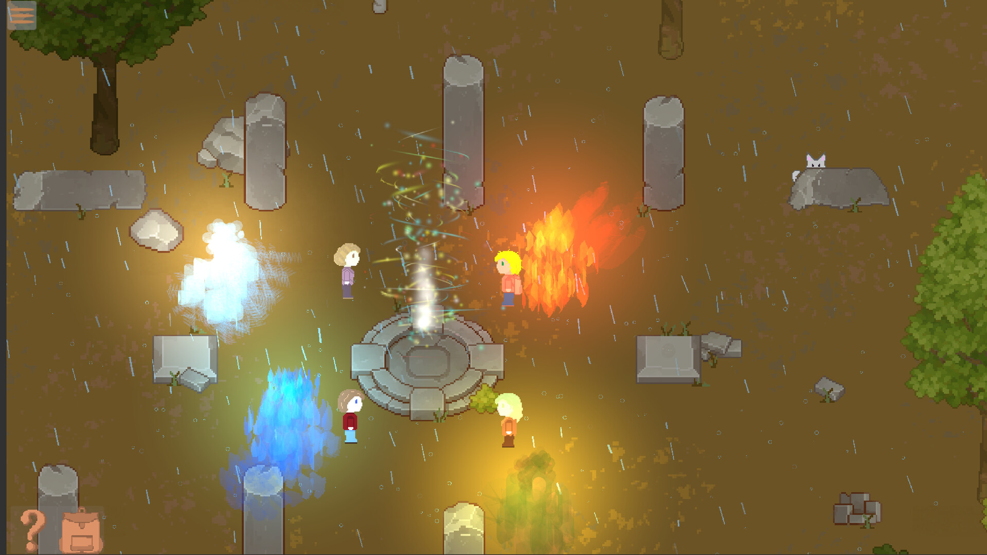Navigate your way through the large pixelated world in 2.5D, through barren fields and shady forests. Visit towns and taverns, explore mountains and oceans. Talk with characters and choose whether to be friendly or rude. Learn how to fix your mistakes, and end up saving the world after all.