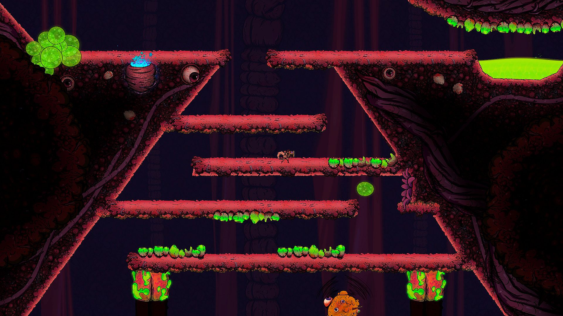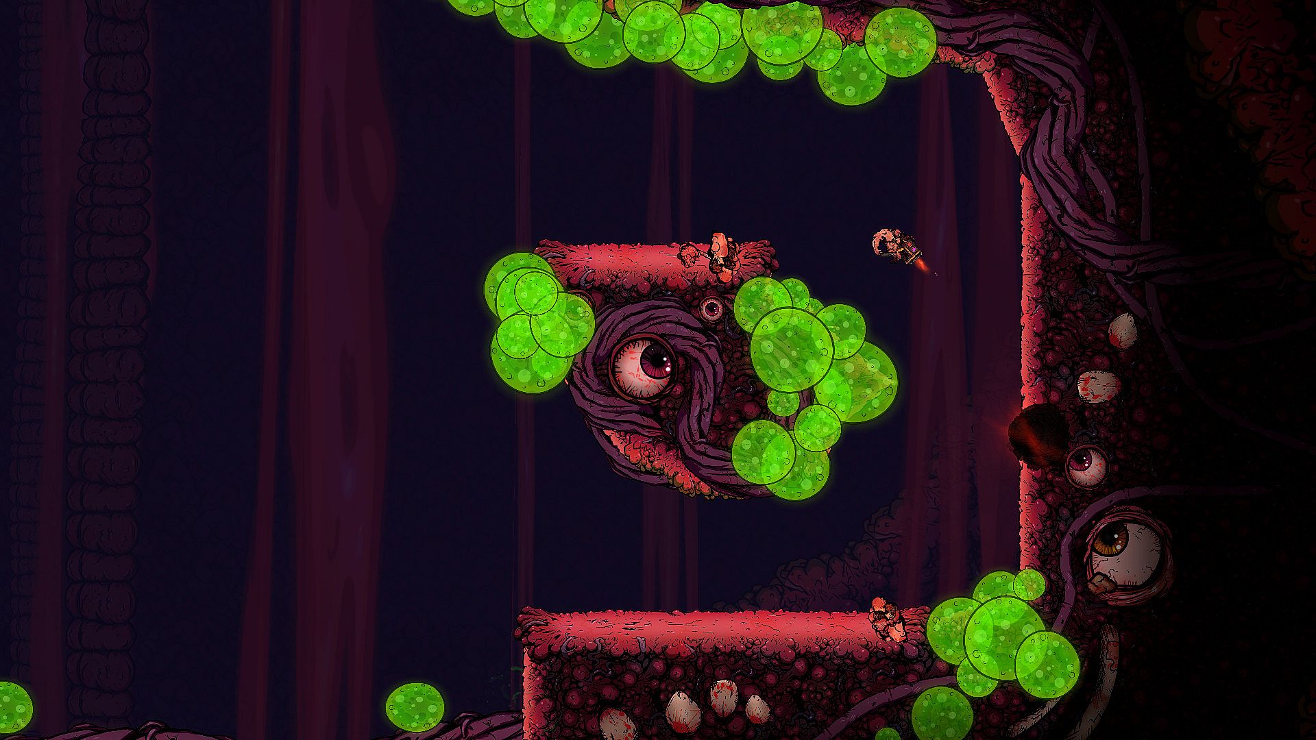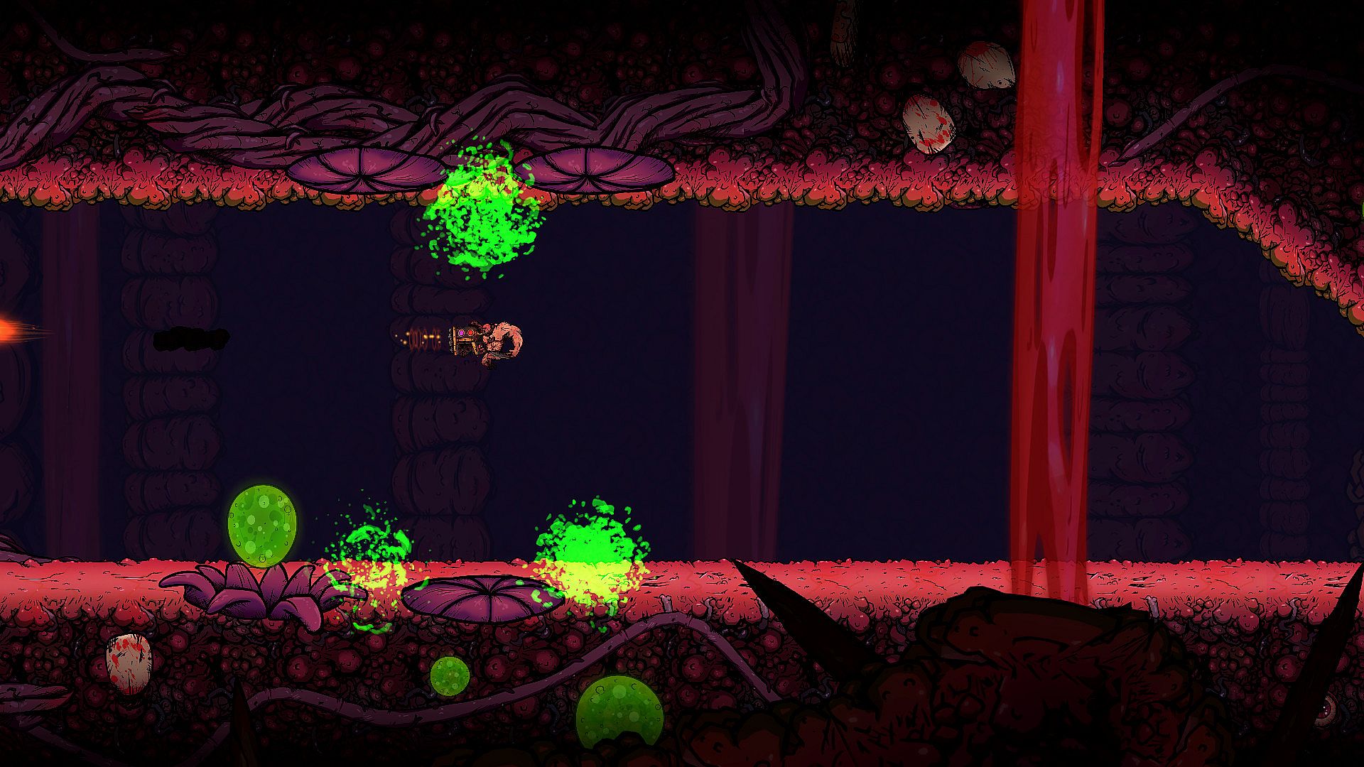 The Flesh God is a hardcore action platformer where you shoot a massive gun to fly through deadly levels infested with mutant flesh.