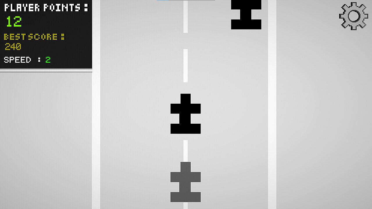 Classic Mode uses traditional controls for steady play. Modern Mode lets you snap between far left and far right lanes with ease. Hard Classic Mode ramps up to max speed fast under traditional steering, while Hard Modern Mode combines quick lane switches with that intense speed buildup. Two color options and clean art direction round out the package. Fans of score-chasing arcade challenges will keep coming back for better runs.