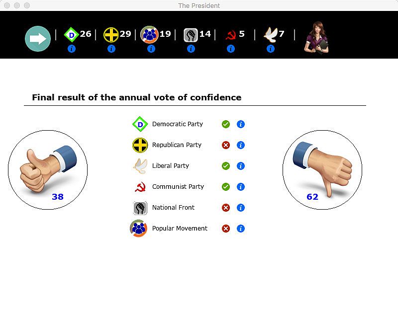 Zanim zaczniesz szukać taniego klucza PC do The President, sprawdź najważniejsze informacje. Twórcy: Mario Scarfone. Wydawca: Mario Scarfone. Data premiery na PC: 07 maj 2018. Gatunki: Strategy, Indie, Simulation. Kategorie: Family Sharing, Single-player, Steam Achievements.