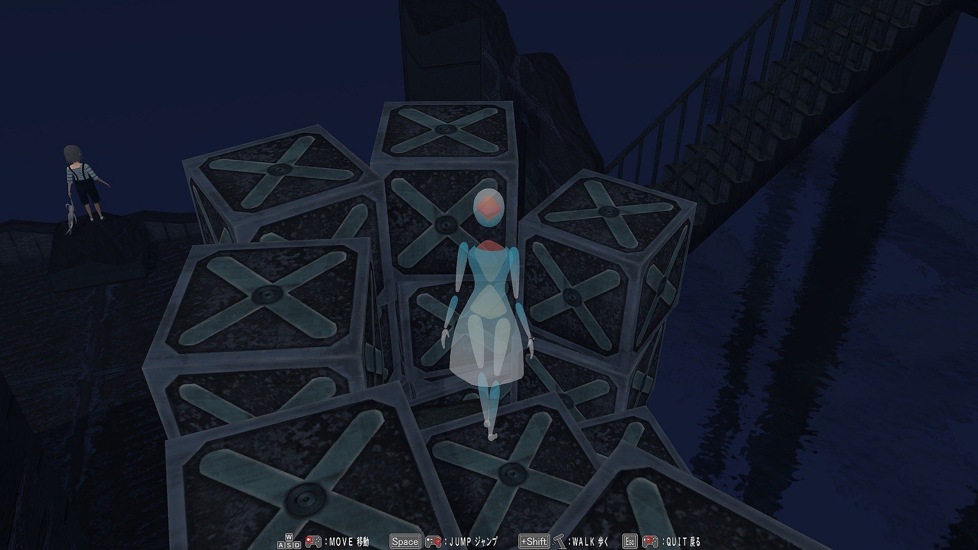 Clione protects a lost child atop a slowly sinking structure in this free-to-play adventure. Play as the manufactured doll, navigating mysteries that unfold across six full chapters. Log4 builds on prior entries, revealing Clione's roots and clashes with a bizarre old man, as the story surges toward its climax. Run, walk, jump, and climb with simple button presses on keyboard or controller, while investigating machines and chatting with encountered people. Hold the child's hand to guide them safely, fend off ankh creatures with a chargeable taser that locks on targets, and interpret unfolding events. This 30-minute exploration suits players who enjoy deliberate action and protective companion mechanics.