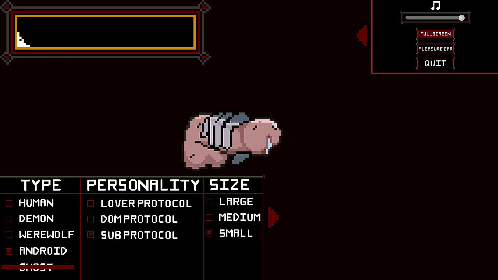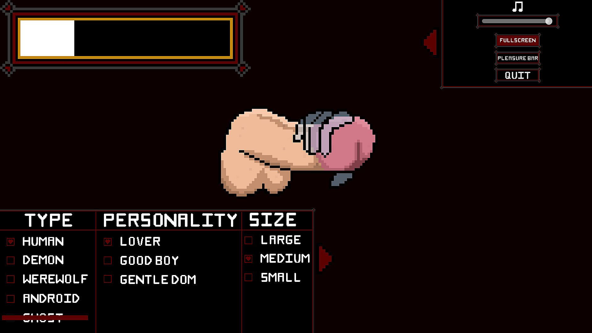 A customizable stroker experience. Select body type, personality, and size to pick and play with your man or monster of choice. Fill the meter to make him cum, or keep stroking to listen to them whine or moan with need.