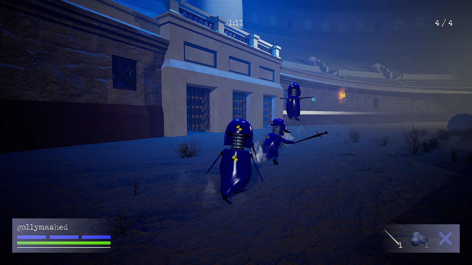 Here you'll directly battle your fellow wassies for the entertainment of Emperor Loomdart. Take a sword and anything else you can find in the arena and do your best!
