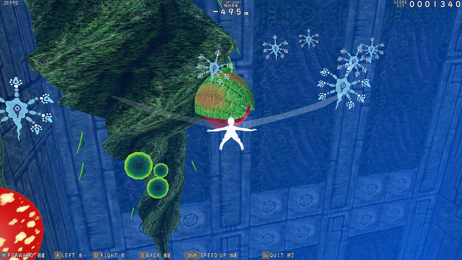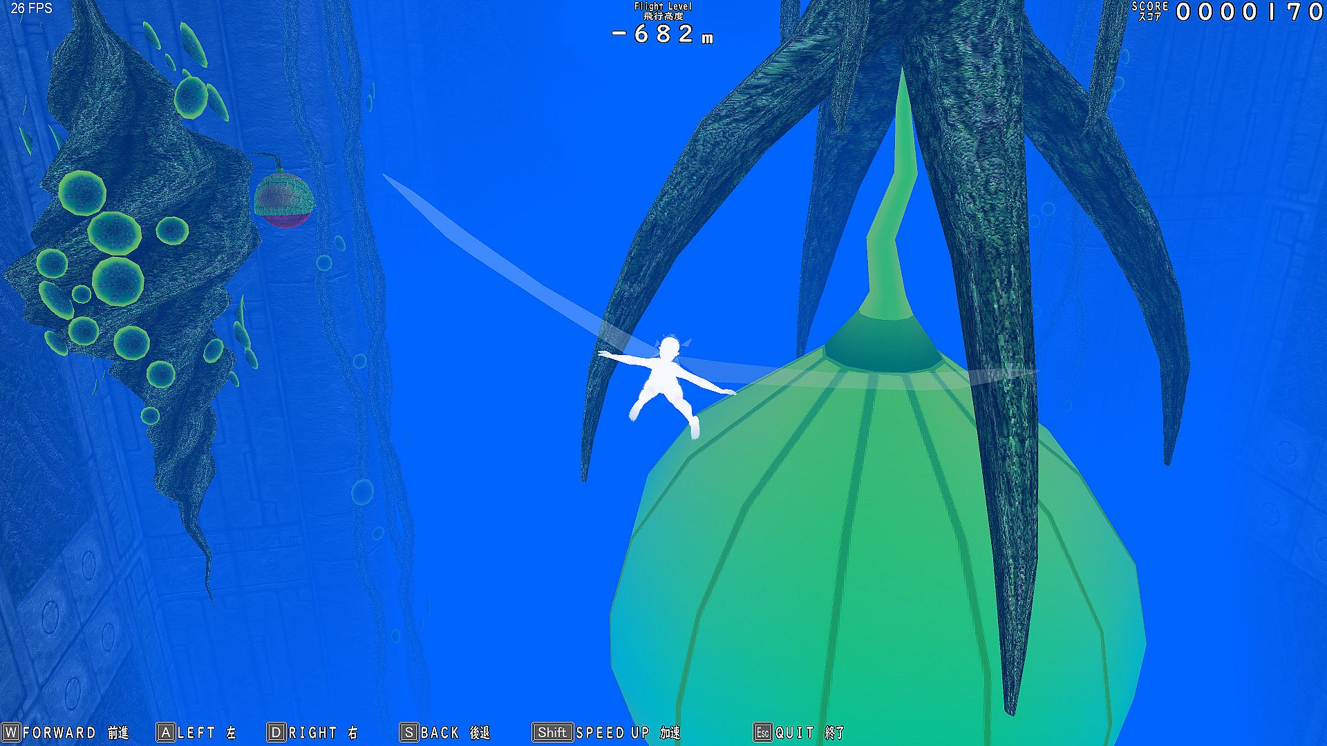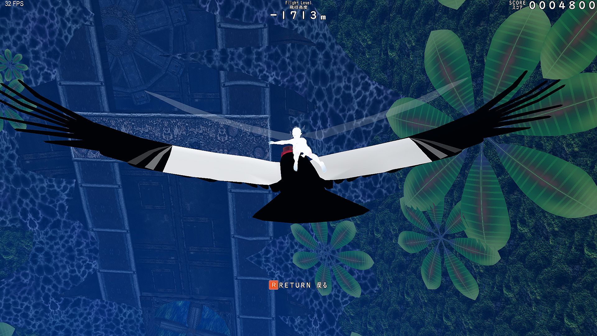 Glide endlessly through infinite vertical holes as Gar Gooyo Lilienthal, a winged girl descending a bottomless cave filled with birds and flowers. Score points by approaching these elements while operating structures to reach new areas in this simple action adventure game. Use keyboard (WASD, SHIFT, R, Esc) or gamepad to move, speed up, interact, and recover from collisions by turning into a soap bubble.