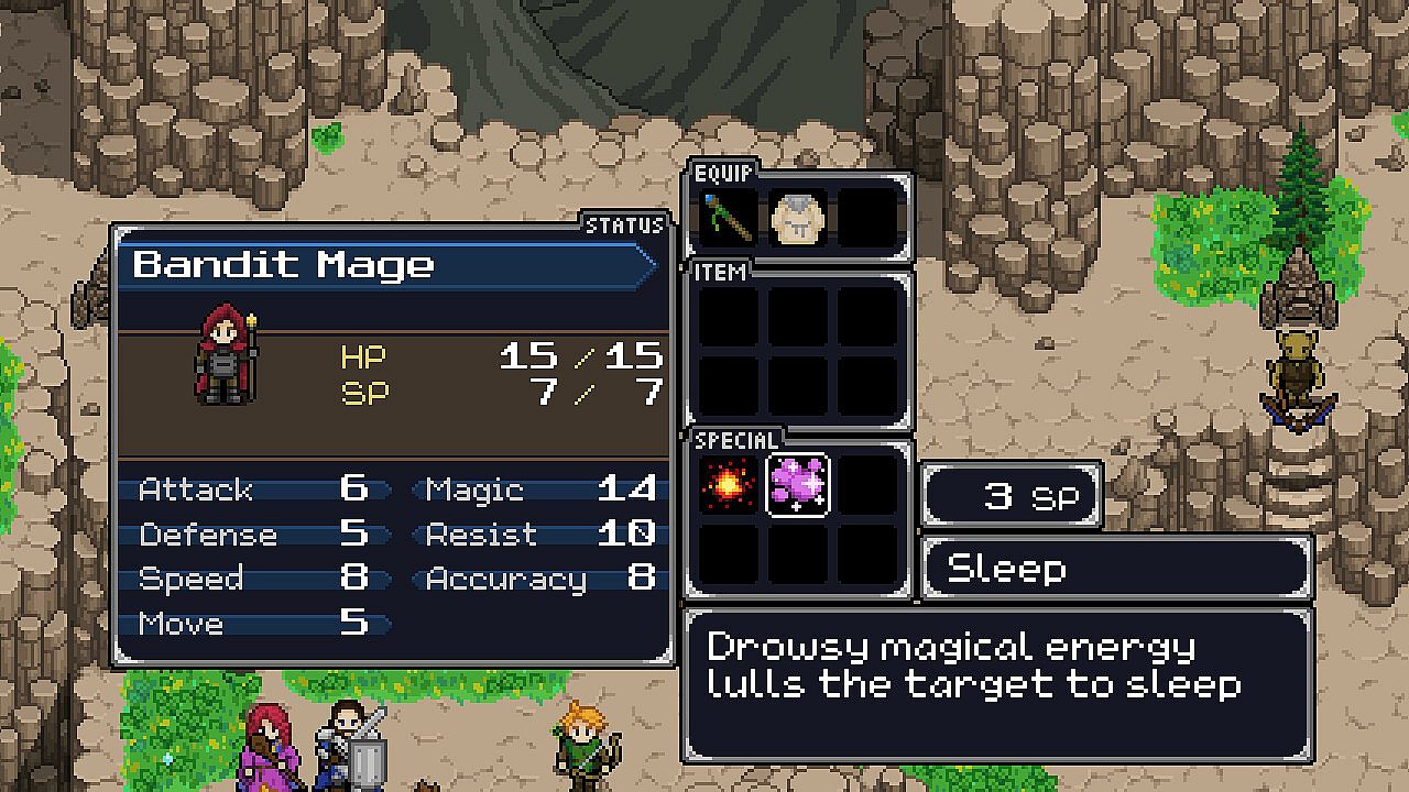 - Grid-based tactical combat based on unit speed. Each unit moves in Turn Order, rather than Player-vs-Enemy phases.