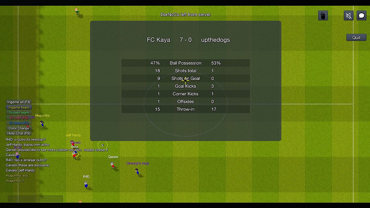 World of Soccer RELOADED is a free-to-play multiplayer soccer game. What makes it unique is the ability to control only one player instead of the entire team, simple graphics and mechanism requiring a whole bunch of skill to master! Are you as talented and skilled player as you think? Let's find out and see if you and your team can get to the top during many competitions like our League, 2v2 tournaments or the NEW Match Making mode!