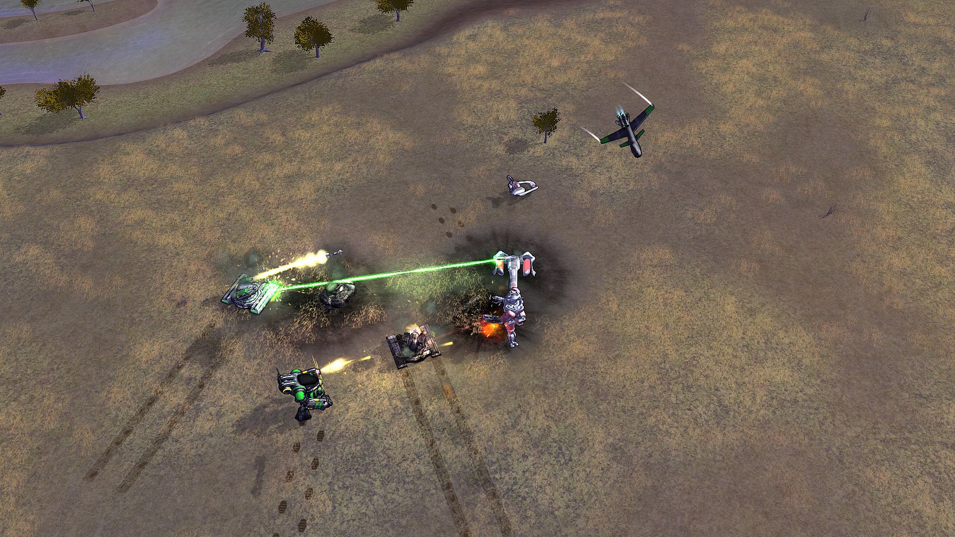 • Traditional real time strategy with physically simulated units and projectiles.