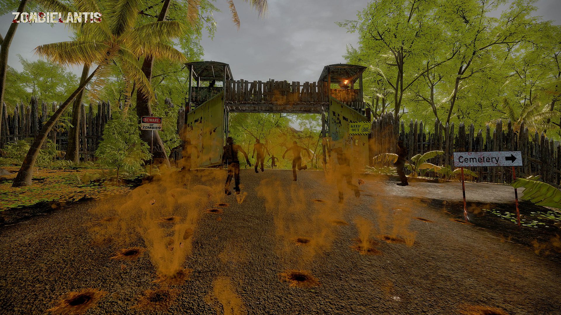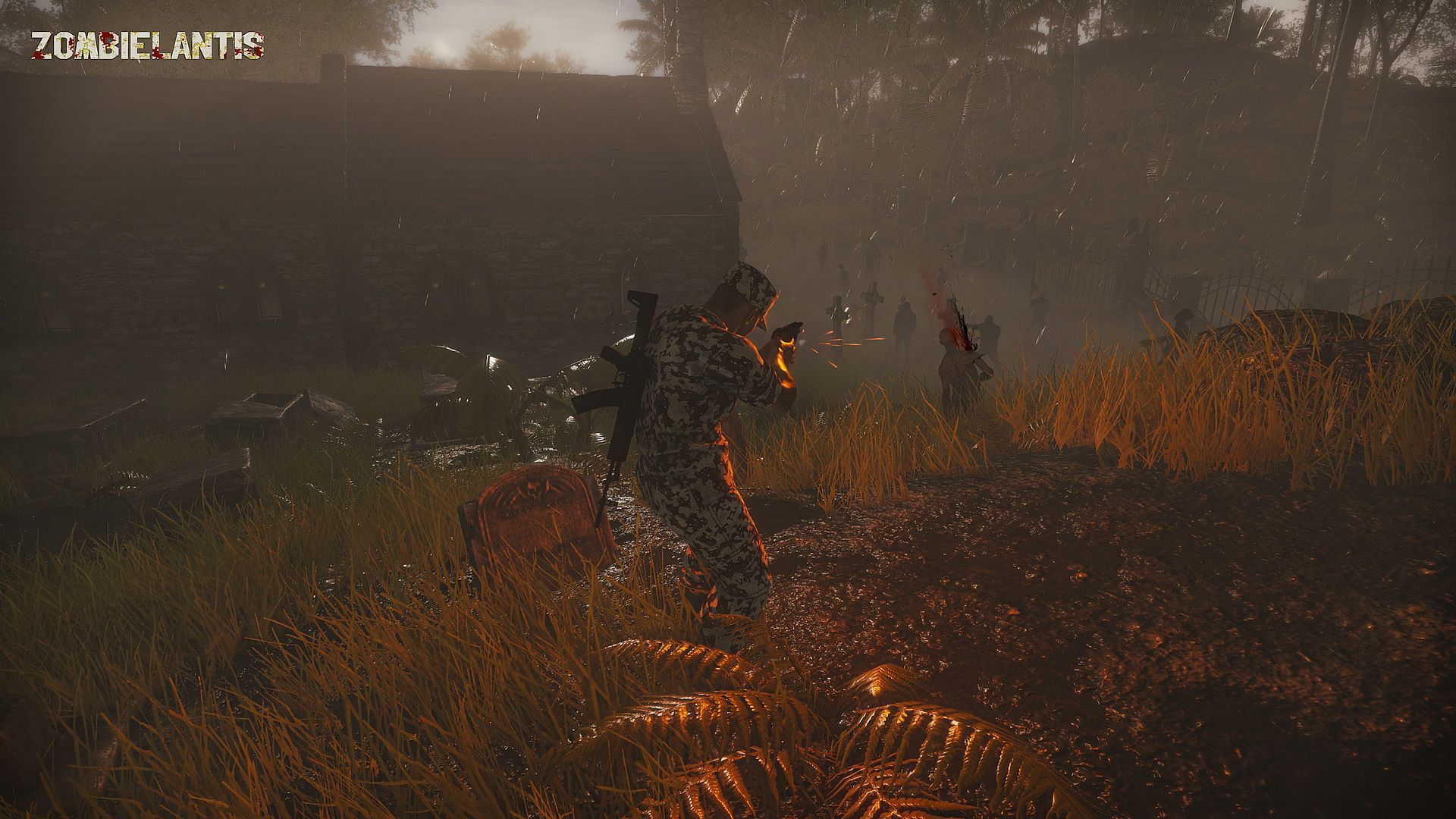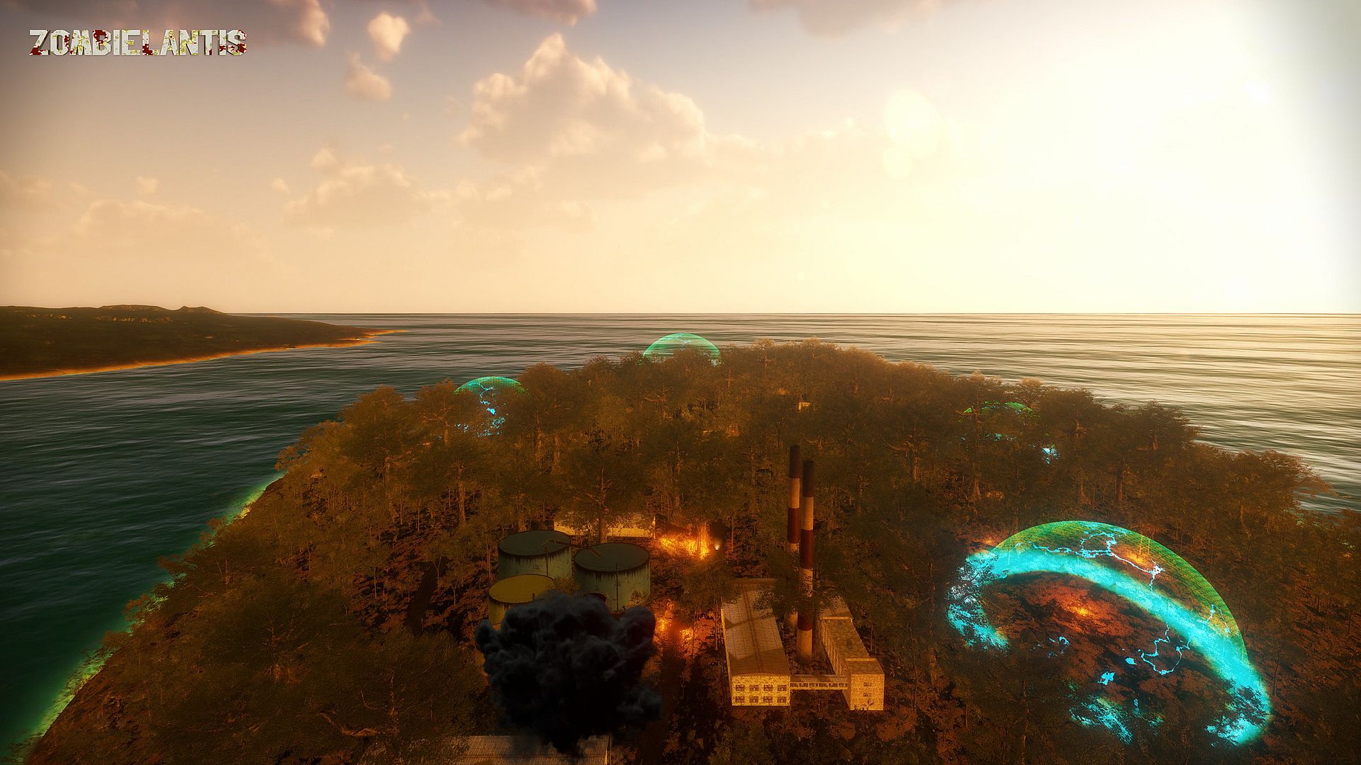 Zombielantis is made up of a big active volcanic island surrounded by several isles that vary in size located in the middle of nowhere far away from civilization. The magnificent views and tropical biome with its dozens of palm trees and the beautiful waterfalls make you forget that danger is lurking everywhere, above and under the surface. Changing daytime and weather conditions ensure that no gaming session is the same.