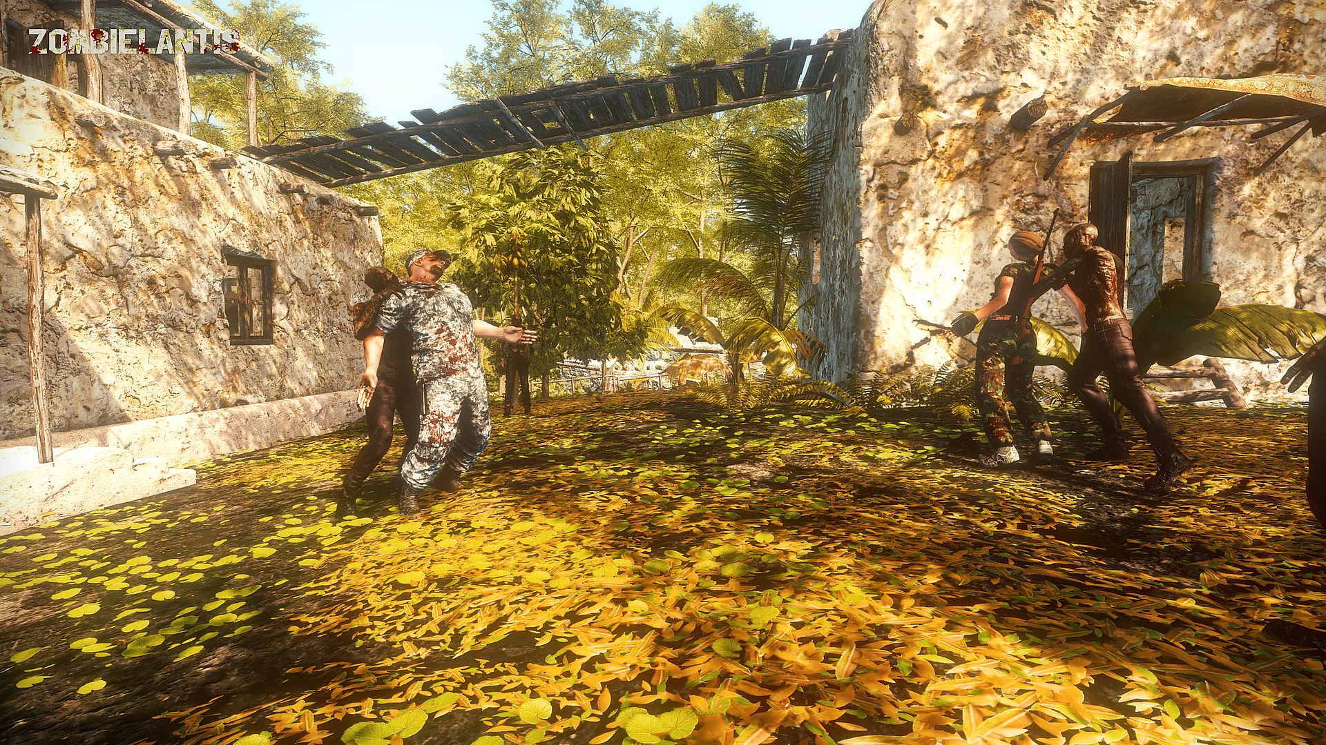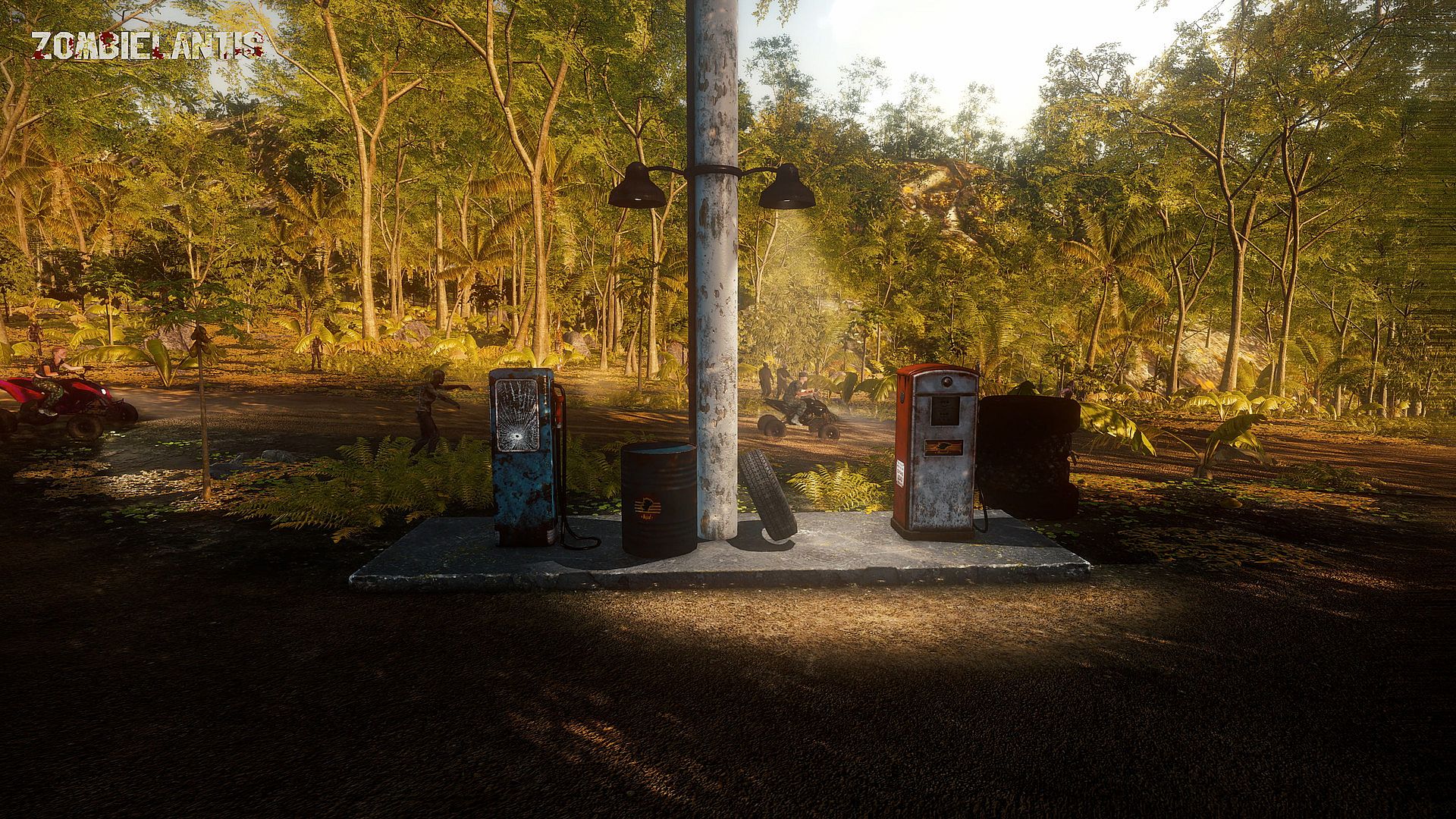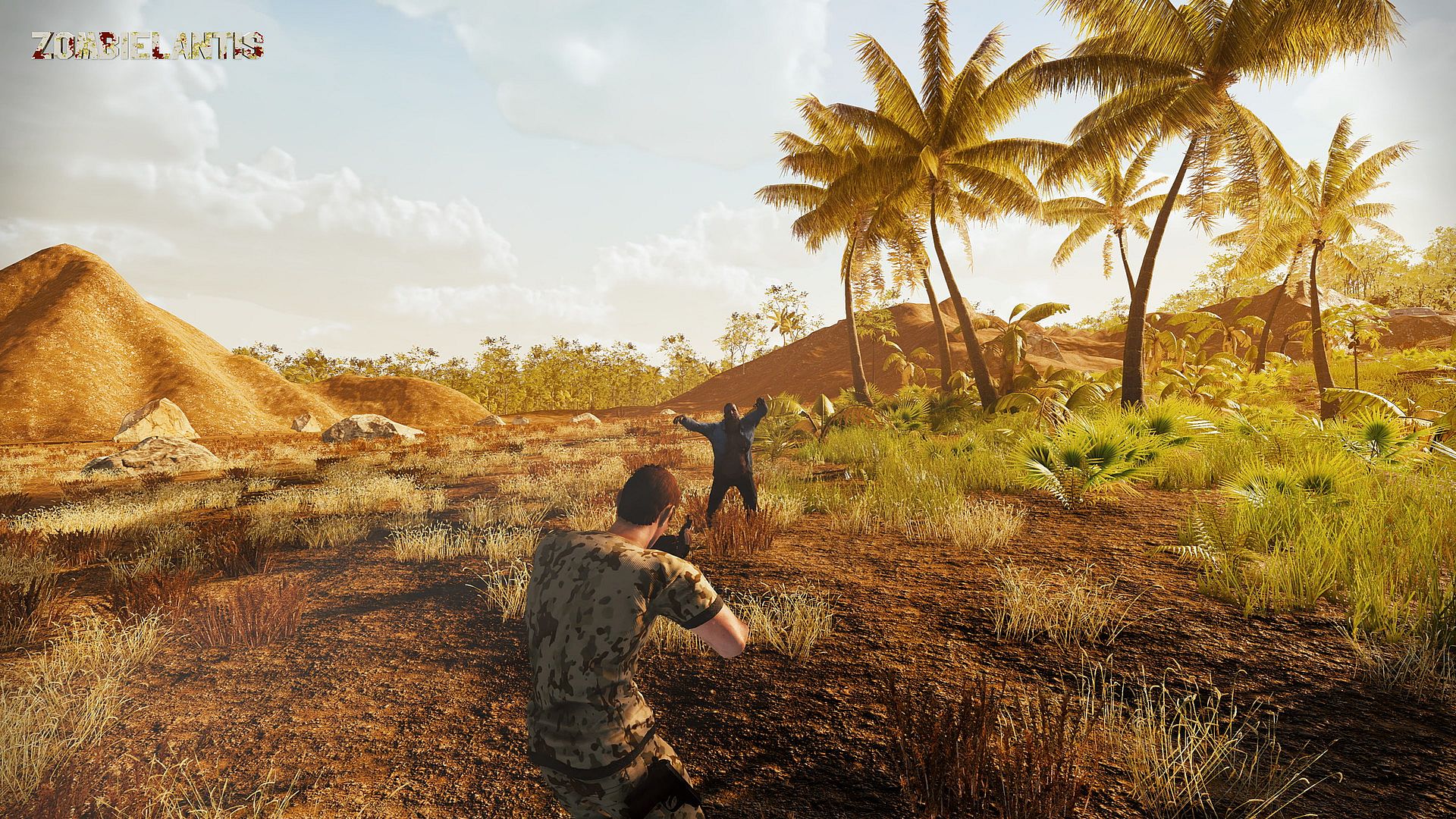 Zombielantis is made up of a big active volcanic island surrounded by several isles that vary in size located in the middle of nowhere far away from civilization. The magnificent views and tropical biome with its dozens of palm trees and the beautiful waterfalls make you forget that danger is lurking everywhere, above and under the surface. Changing daytime and weather conditions ensure that no gaming session is the same.